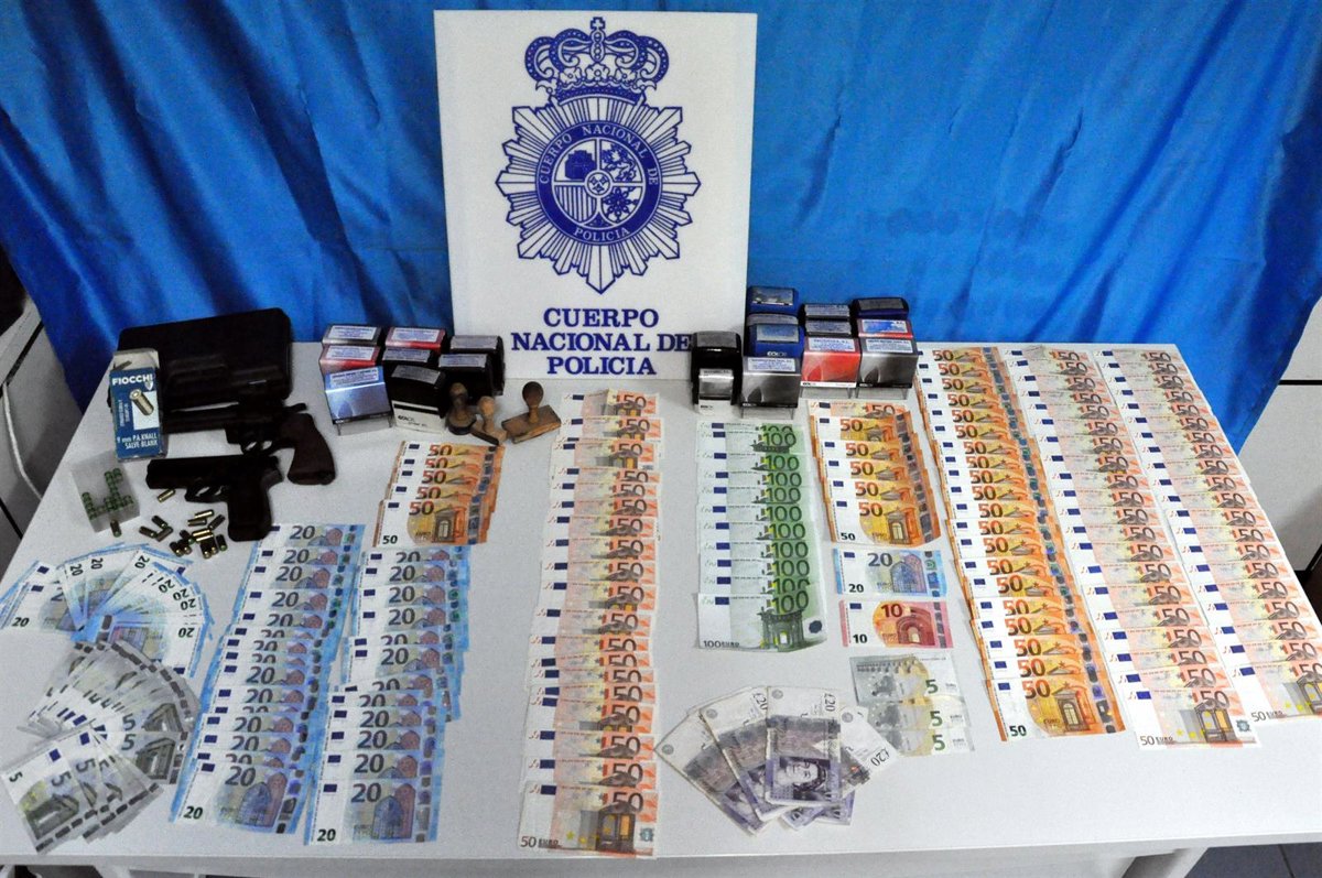 De igual modo, los agentes practicaron tres registros domiciliarios y otro en una nave industrial, donde se intervinieron dos pistolas detonadoras, 23 sellos de las diferentes empresas ficticias, material informático, documentación, mercancía valorada en más de 38.000 euros y 6.785 euros en efectivo.