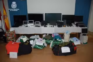 Dentro de los domicilios se encontraron multitud de objetos electrónicos, 8 ordenadores portátiles y 12 tabletas electrónicas, gran cantidad de ropa de marca con su correspondiente etiqueta, 5.000 euros en metálico y diversa documentación falsificada con la que la organización se prevalía para perfeccionar las estafas.