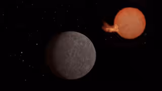 Representación artística del exoplaneta SPECULOOS-3 b orbitando una ardiente estrella roja que presenta una llamarada en su superficie - NASA/JPL-CALTECH