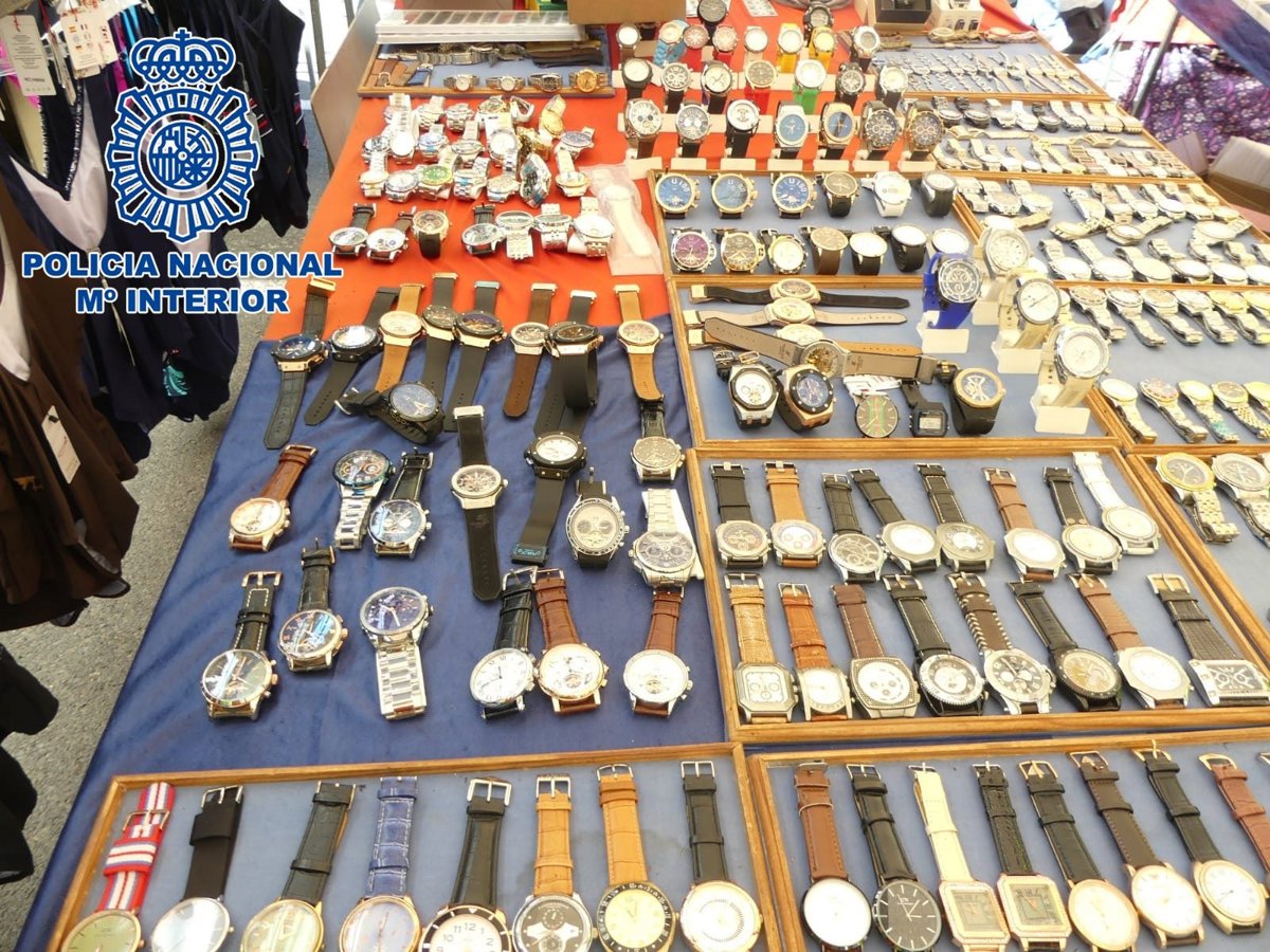 Entre los efectos falsificados intervenidos por los agentes se encontraban gran número de camisetas deportivas, relojes, zapatillas, bolsos y chapas de reconocidas marcas comerciales.