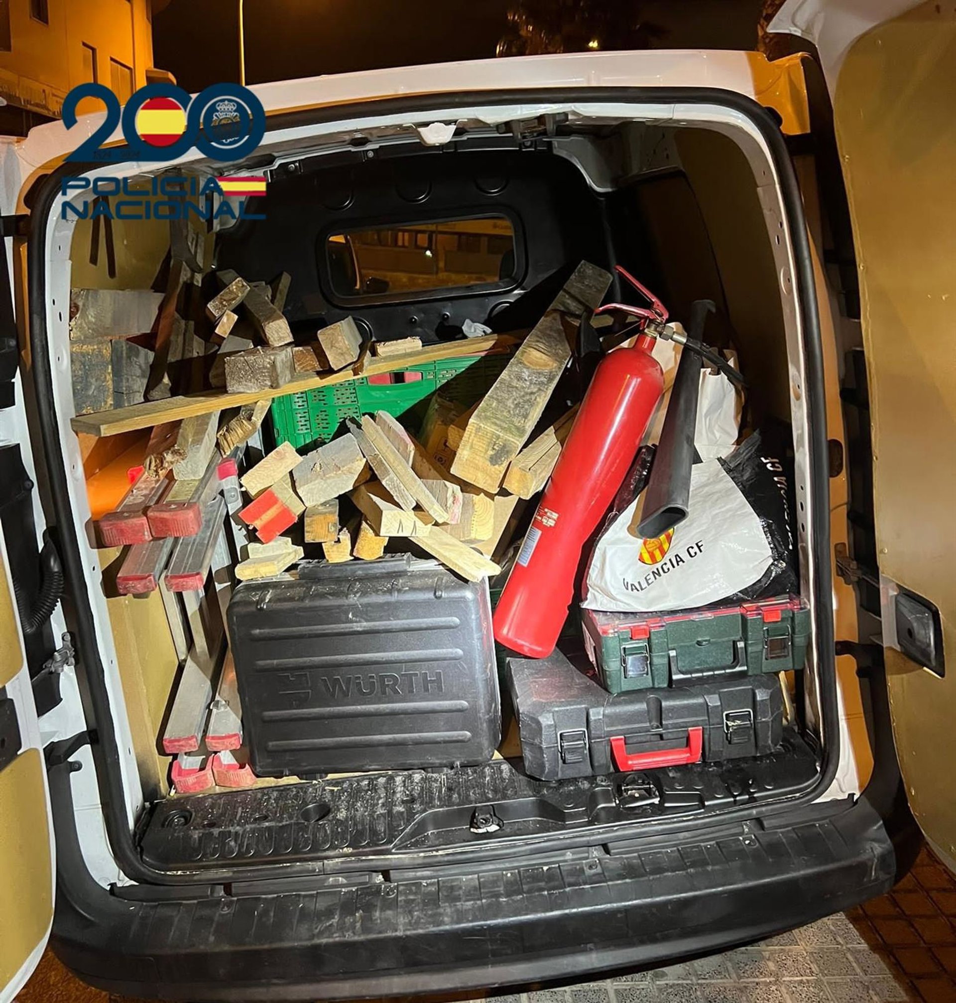 Además, en el exterior se localizó una furgoneta con diverso material de construcción, y documentación del arrestado.