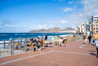Archivo - Un grupo de personas en una terraza el día más frío del año en la playa de las Canteras, a 21 de enero de 2023, en Las Palmas de Gran Canaria, Las Palmas, Canarias (España). A partir de hoy, las temperaturas descienden por la llegada de una géli - Europa Press - Archivo
