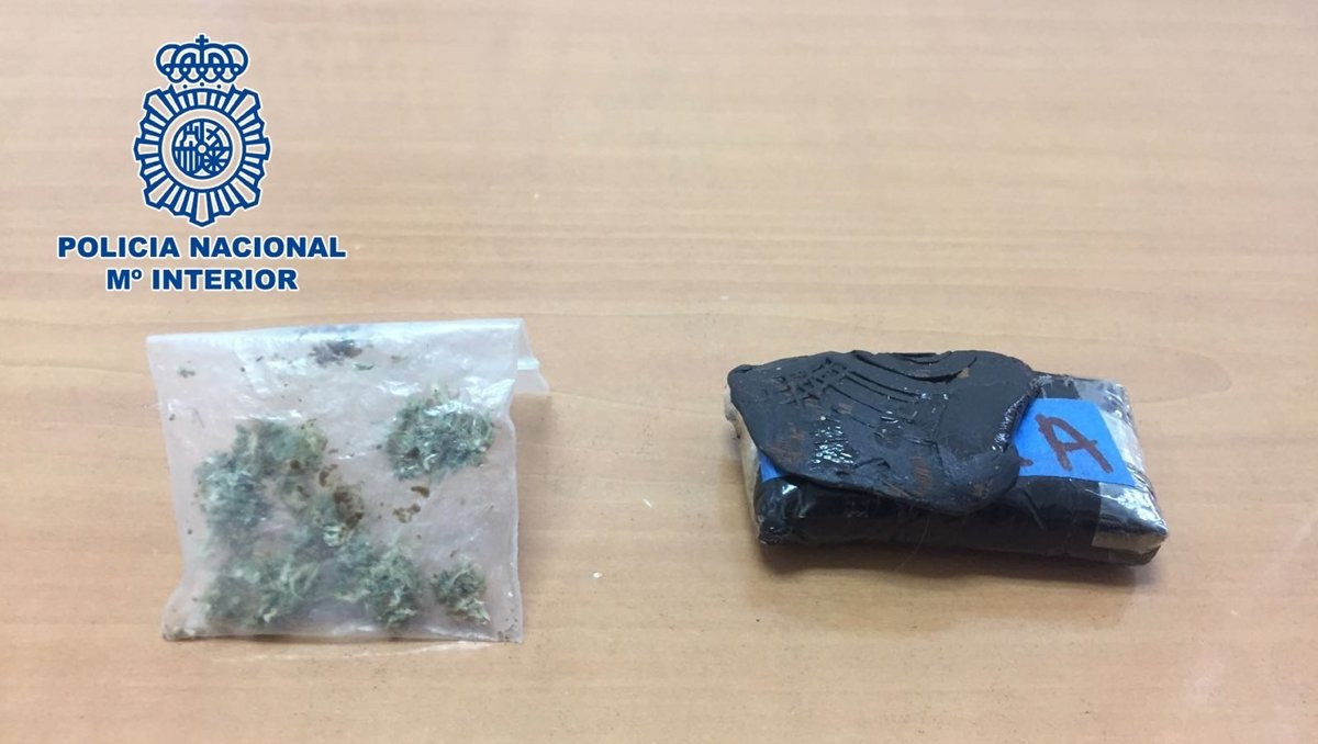 Durante el registro se le ocupó en el interior de una mochila que portaba un trozo de hachís con un peso total de 59 gramos y una bolsita conteniendo 1,5 gramos de marihuana. Asimismo se le intervino la cantidad de 57,29 euros en efectivo. Ante tal descubrimiento el individuo manifestó de forma espontánea a los agentes, "que se ganaba un dinero repartiendo la droga".