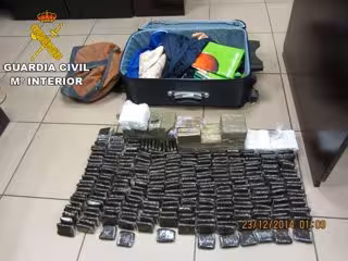 Posteriormente, se verificó que en la maleta tipo trolley que llevaba de equipaje de mano, transportaba 351 pastillas de hachís, de diferente tamaño y peso, que juntas arrojaban un total de 21 kilos.
