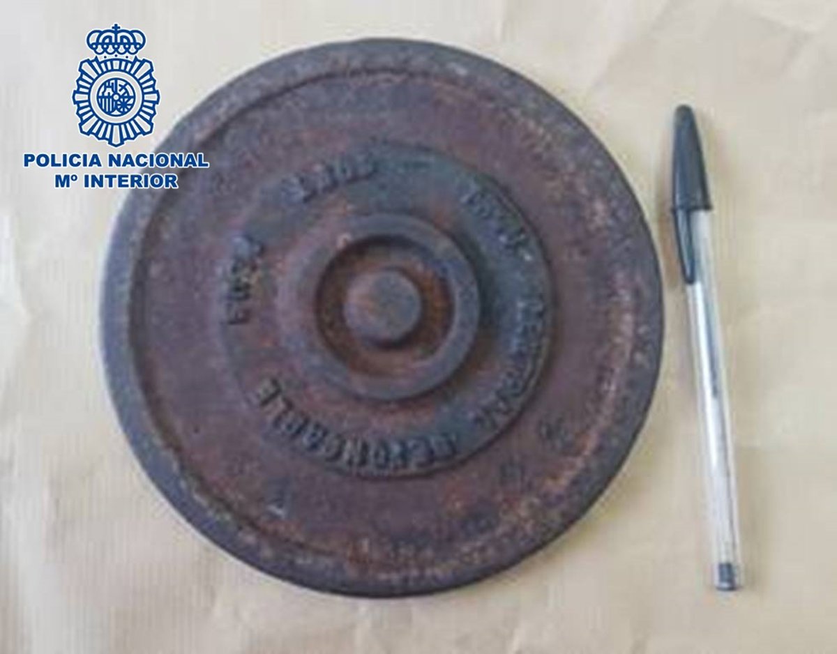 Tapa de conducto de agua con la que el detenido cometía los robos - POLICÍA NACIONAL