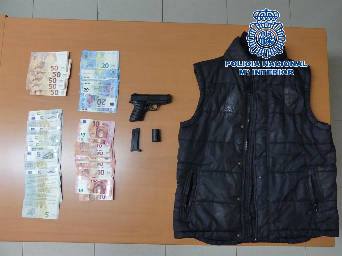 Dinero, arma simulada y ropa usada por el detenido en el atraco a la administración de lotería - POLICÍA NACIONAL