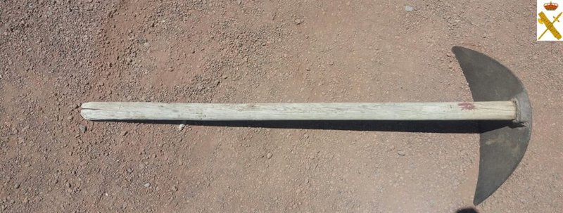 Los agentes comenzaron a inspeccionar toda la zona donde ocurrieron los hechos y encontraron una azada con manchas de sangre cerca de la parte metálica. Además, cuando consiguieron bajar hasta el fondo del barranco, pudieron divisar el cuerpo sin vida de un perro, tipo podenco, que mostraba heridas que a simple vista parecían muy recientes.