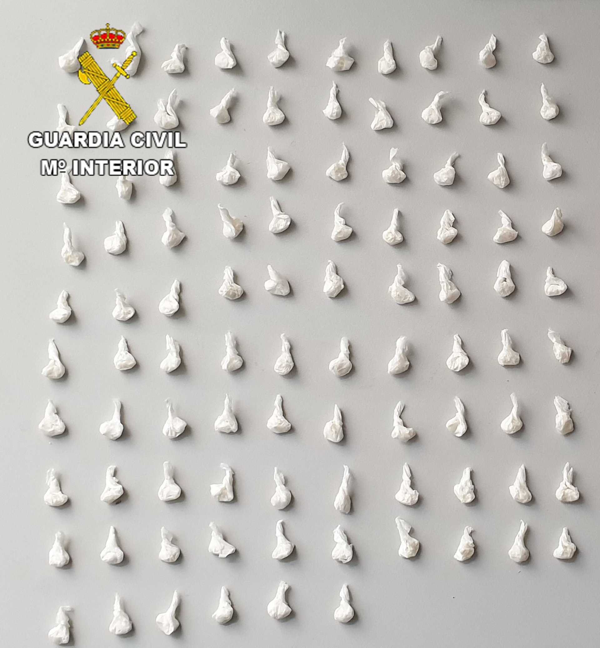 La Guardia Civil del Puesto Principal de Santa María de Guía (Gran Canaria) detuvo el 1 de mayo a un hombre de 38 años y con antecedentes, al ser sorprendido por los agentes en Gáldar con un total de 96 dosis de crack listas para su venta, según ha informado la Benemérita en una nota de prensa.