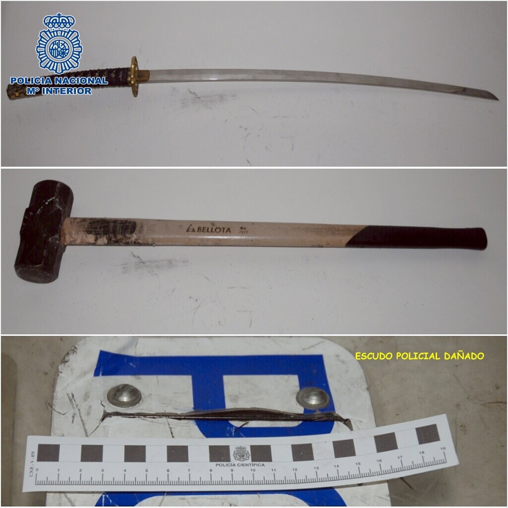 Por tales hechos se instruyeron las oportunas diligencias policiales en la Comisaría de Distrito Sur, que junto a la maza y la catana fueron remitidos al Juzgado de Guardia.