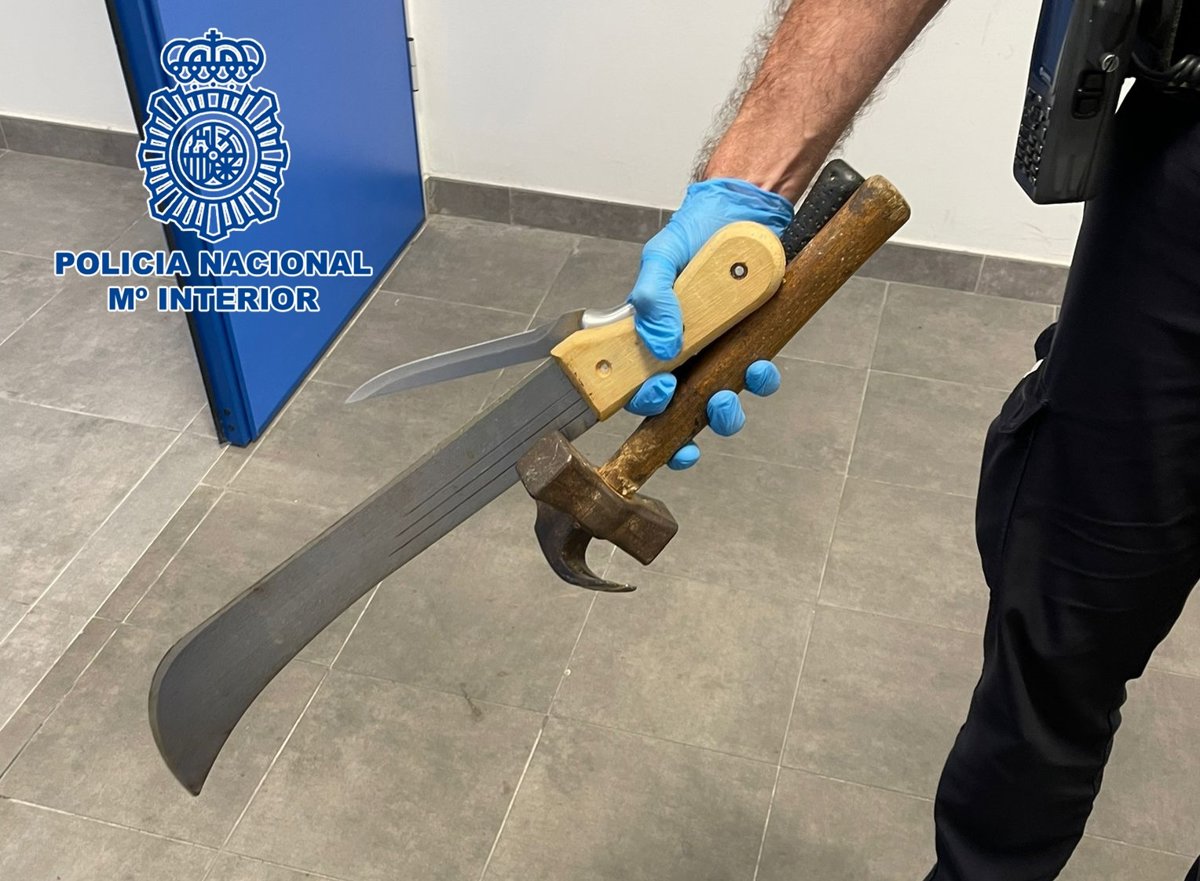 Una vez los agentes en el lugar, los testigos identificaron a dos hombres como los portadores de un machete, un cuchillo y dos martillos, por lo que fueron detenidos como presuntos autores de un delito de amenazas graves y puestos a disposición de la Autoridad Judicial competente.