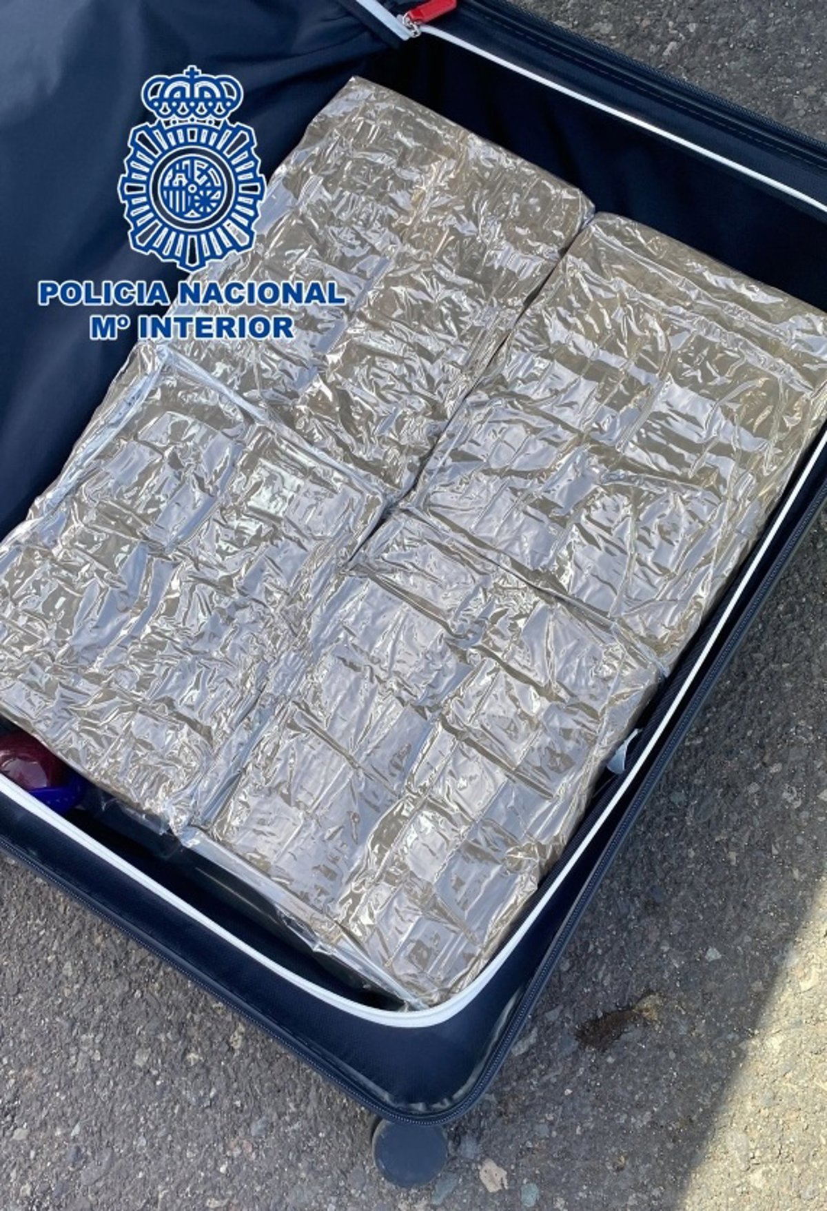 De forma paralela los agentes de la Policía Nacional realizaron un registro en el vehículo, encontrando en el portabultos una maleta que contenía varios paquetes de lo que parecía ser hachís, ascendiendo el peso total a 30 kilogramos.