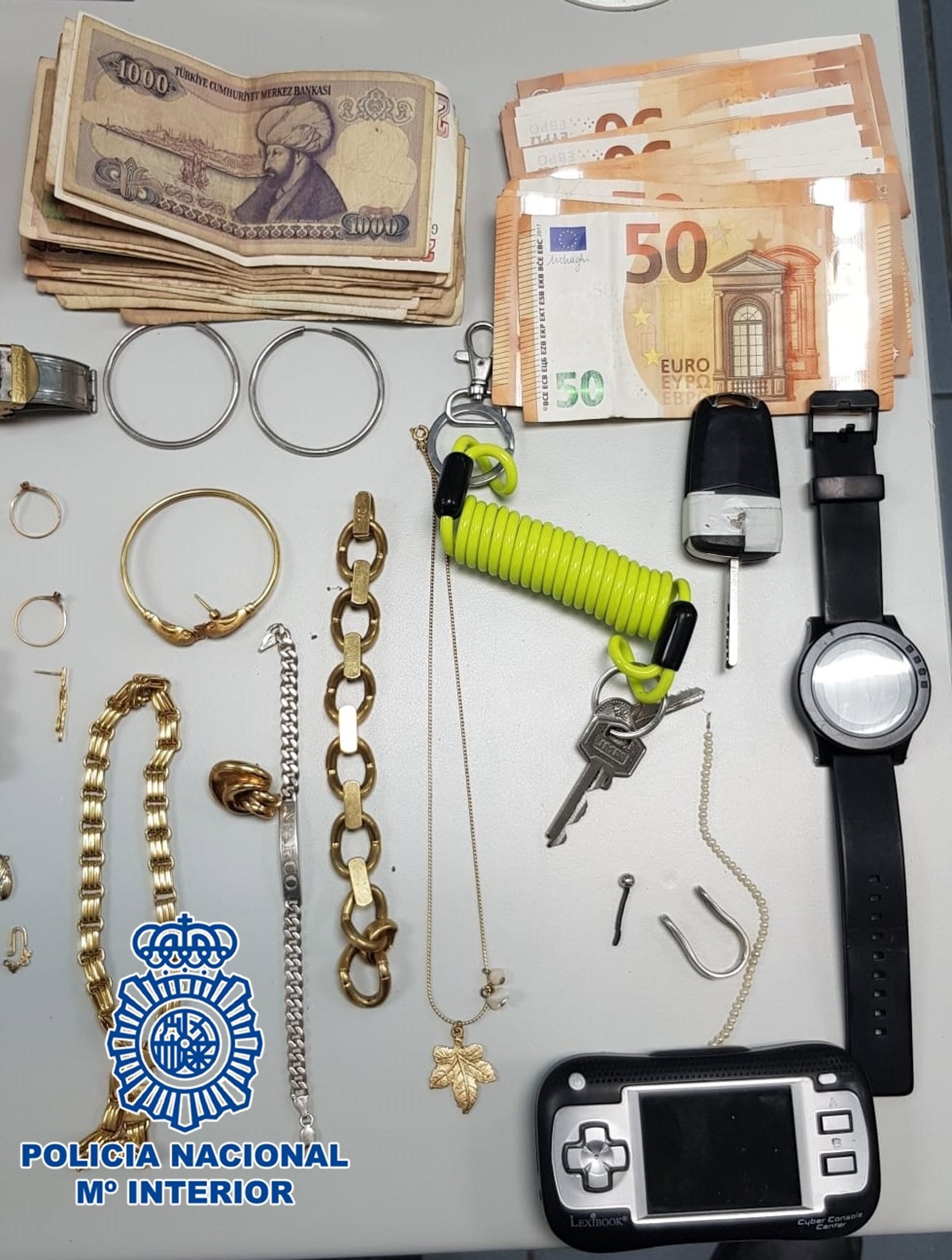 Así, en el cacheo de seguridad los agentes encontraron entre sus pertenencias una bolsa de plástico con joyas, tres relojes, 1.100 euros y moneda extranjera, de tal forma que la investigación continúa abierta para determinar la procedencia de las mismas.