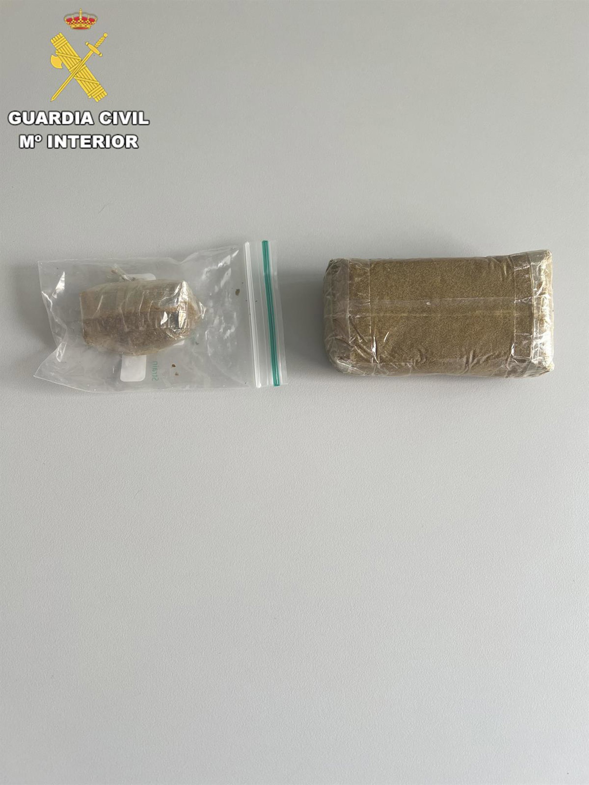 En concreto, la persona investigada llevaba entre sus pertenencias una pastilla de resina color marrón (hachís), además de una lámina de resina marrón (hachís), que estaban perfectamente dosificadas para su venta. El peso total de la droga intervenida ascendió a 109 gramos.