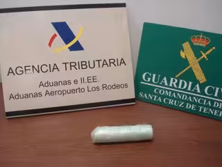 La mujer procedía de un vuelo nacional y fue arrestada en la sala de llegadas, ya que se le revisó el bolso de mano y en su interior envuelta en plástico, en forma de cilindro, se localizó una sustancia blanquecina. Tras realizar una prueba con el 'drogatest', dio positivo a cocaína. El total del peso del contenido de la cápsula ascendía a 503 gramos, informó la Benemérita en un comunicado.