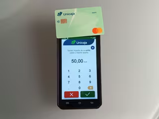 Archivo - TPV y una tarjeta bancaria. - UNICAJA - Archivo