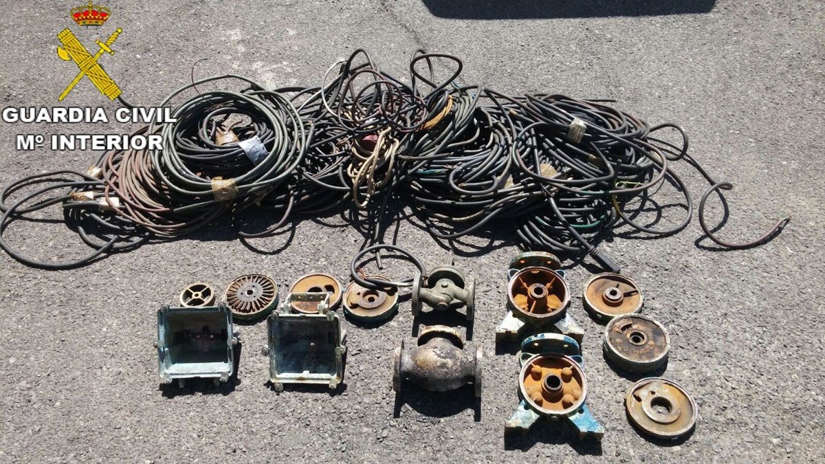 El Equipo Roca de la Comandancia de la Guardia Civil de Las Palmas detuvo el 16 de junio a una persona que responde a las iniciales de N.G.M., de 53 años de edad y de nacionalidad española, por ser el presunto autor de un delito de hurto al sustraer un total 122 kilogramos de material de cobre y bronce en Gran Canaria.