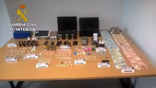 En cuanto a la fase de entrada y registro en la finca, que se ejecutó el 21 de mayo a las 16.00 horas, concluyó con la detención de seis personas y la intervención de más de 5.200 euros en billetes y monedas fraccionados, dos ordenadores portátiles, diversos teléfonos móviles, walkie-talkies, una gran cantidad de documentación relacionada presumiblemente con las actividades delictivas.