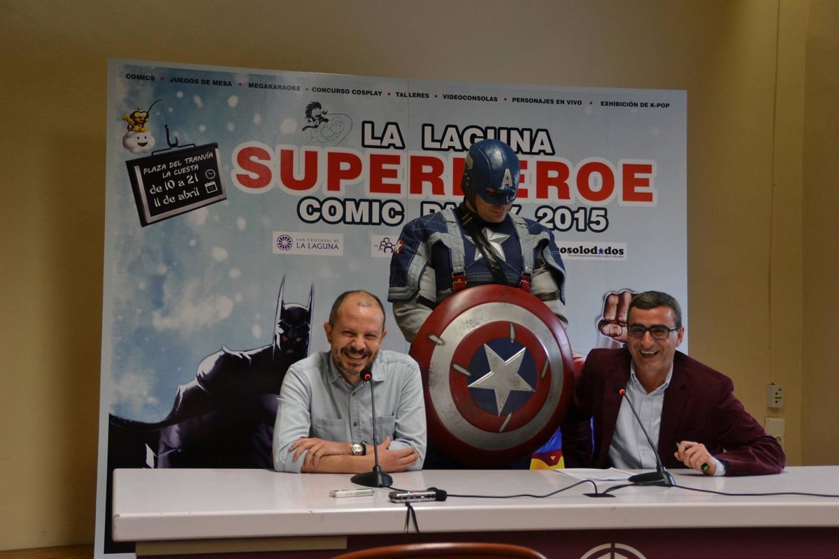 El primer teniente de alcalde y concejal de Participación Ciudadana, Javier Abreu, y el doblador tinerfeño Fernando Cabrera, cuya voz presta al popular personaje de la serie americana 'The Big Bang Theory', Sheldon Cooper, han presentado este viernes en rueda de prensa la primera edición de 'Cómic Party La Laguna 2015', que se celebrará este sábado en la plaza de El Tranvía, en La Cuesta.