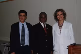 Aprovechando la visita, el doctor Boachie ofreció una conferencia para el personal y público interesado sobre la escoliosis. Además, dio a conocer la labor que realiza en África la Fundación FOCOS, de la que es presidente, para dar asistencia a niños y adultos con padecimientos de columna vertebral. La Fundación Salud y Sanidad del Cabildo de Tenerife y el proyecto CERMAC de Interreg III han colaborado para que esta conferencia y la retransmisión en directo de la intervención al Aula 25 Aniversario se pudiera llevar a cabo.