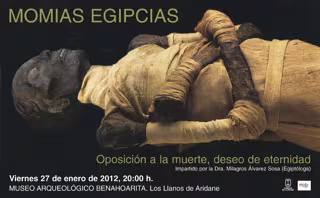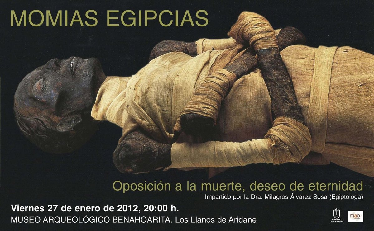 Bajo el título 'Momias egipcias. Oposición a la muerte, deseo de eternidad', la egiptóloga palmera, que es la primera persona en obtener un doctorado en esta materia en Canarias, en este caso por la Universidad de La Laguna, acercará al público asistente, a través de material visual, sus experiencias obtenidas en distintas excavaciones arqueológicas e investigaciones realizadas en la arena del desierto a las orillas del Nilo.