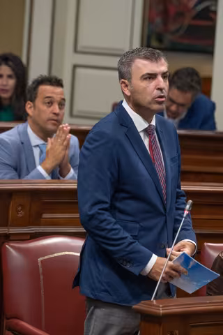El vicepresidente y consejero de Economía, Industria, Comercio y Autónomos del Gobierno de Canarias, Manuel Domínguez, ha reprochado este martes al portavoz del Grupo Socialista, Sebastián Franquis, que no censura las críticas de cargos del PSOE hacia los migrantes y le ha pedido "bajar el tono" para no contribuir a la "crispación social".