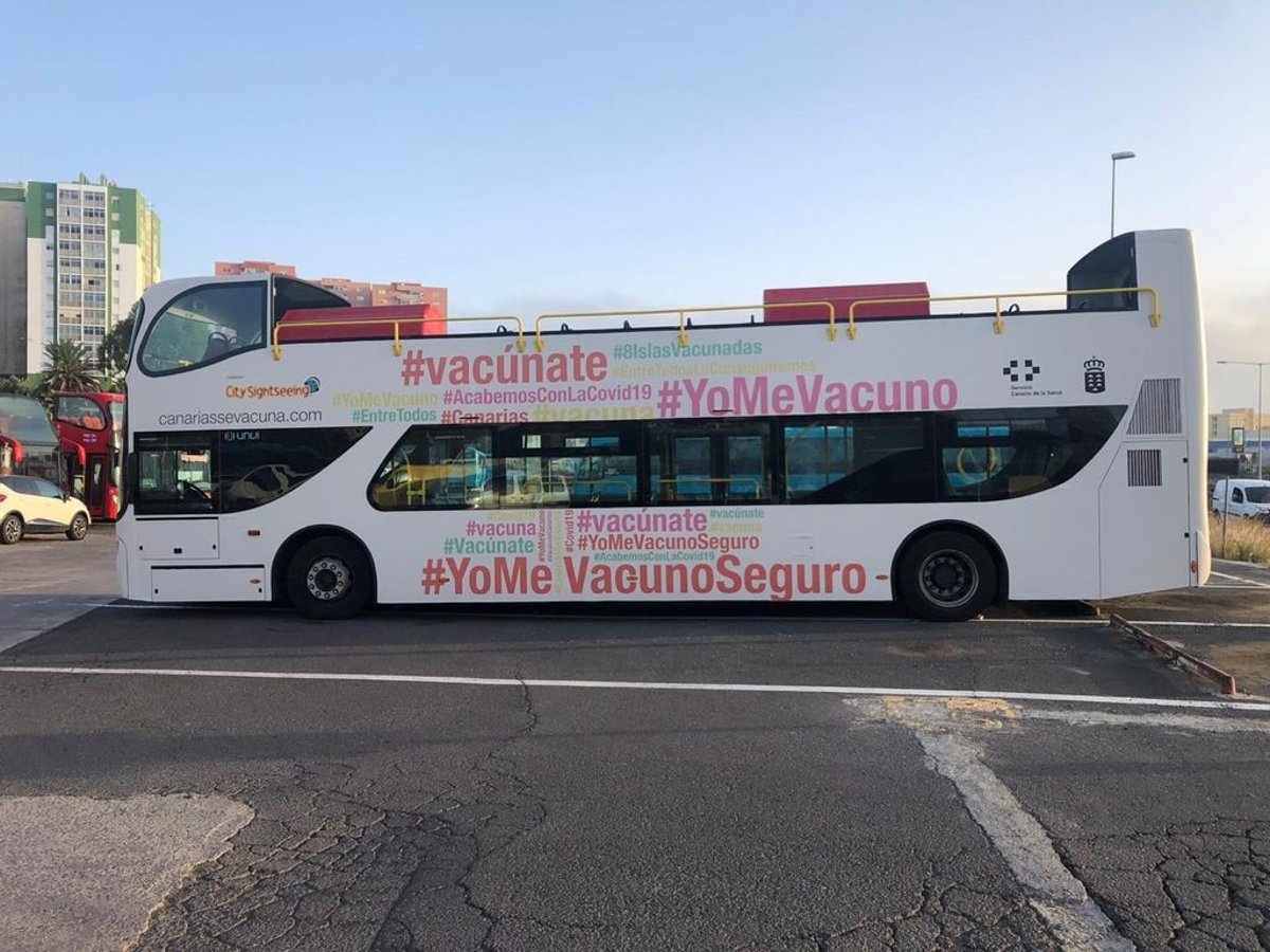 La Consejería de Sanidad del Gobierno de Canarias, en colaboración con la empresa CitySightseeing de Las Palmas de Gran Canaria, ha puesto en marcha esta semana dos guaguas turísticas que recorrerán la isla de Gran Canaria y Tenerife para administrar dosis de la vacuna contra la Covid-19 a personas de 12 años (ya cumplidos) o más que no hayan recibido ninguna vacuna contra el coronavirus.