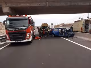 El suceso se produjo poco después de las dos de la tarde, cuando la sala operativa del 1-1-2 recibió una alerta en la que se informaba que un vehículo había colisionado con la mediana de la autopista TF-1. Los alertantes añadieron que había personas atrapadas y que el vehículo desprendía mucho humo con riesgo de incendio.