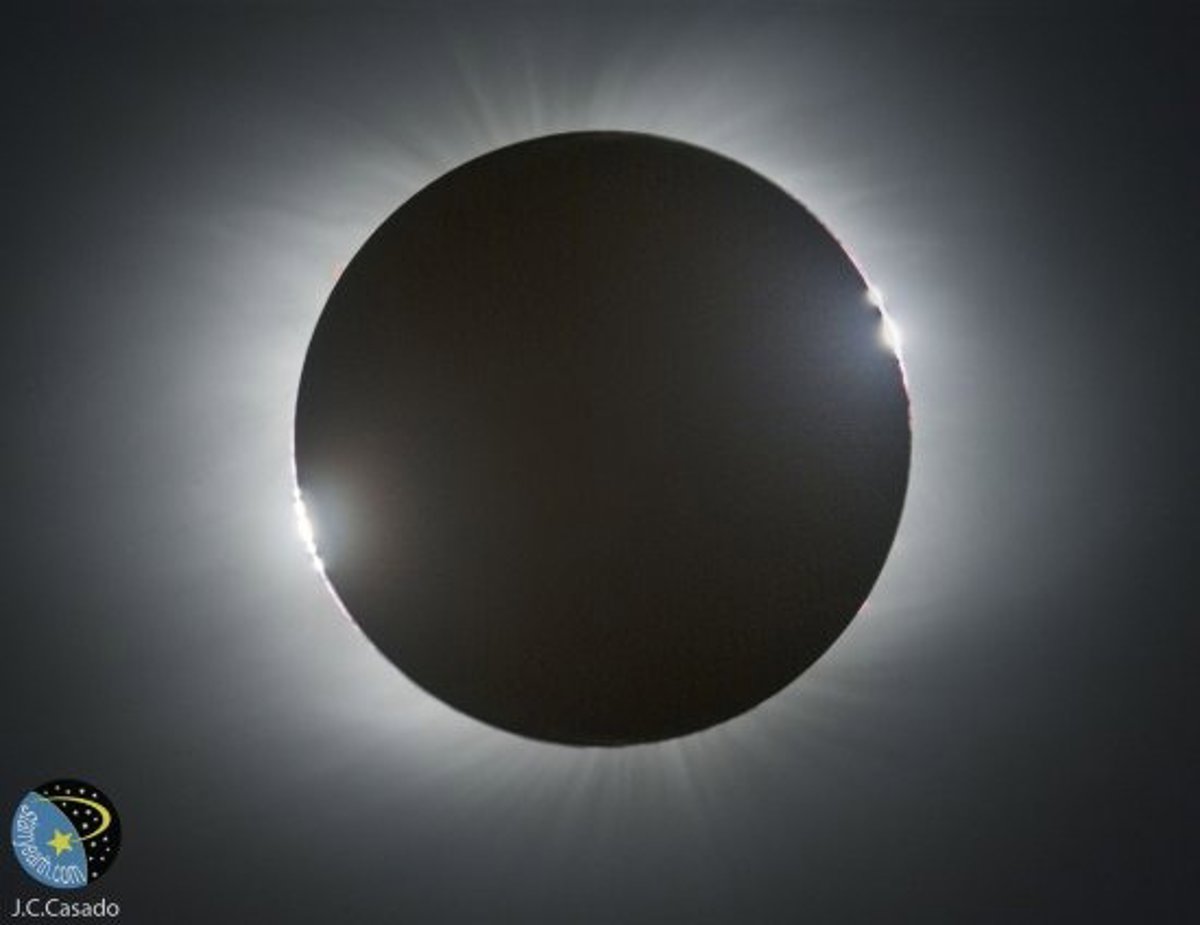 Los investigadores destacan también que en el centro resalta el disco lunar, convertido en un tapón negro en el cielo. La forma y brillo de la corona dependen esencialmente del instante en que se encuentre nuestra estrella en su ciclo de actividad de 11 años.