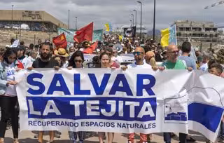 Seguidamente, los manifestantes se congregaron en La Tejita para expresar su rechazo a la construcción de un hotel de cinco estrellas. Durante el transcurso de la misma se rodeó la parcela hotelera y se cantaron consignas como 'La Tejita no se toca', 'Gobierne quien gobierne La Tejita se defiende' o 'La playa es nuestra'.