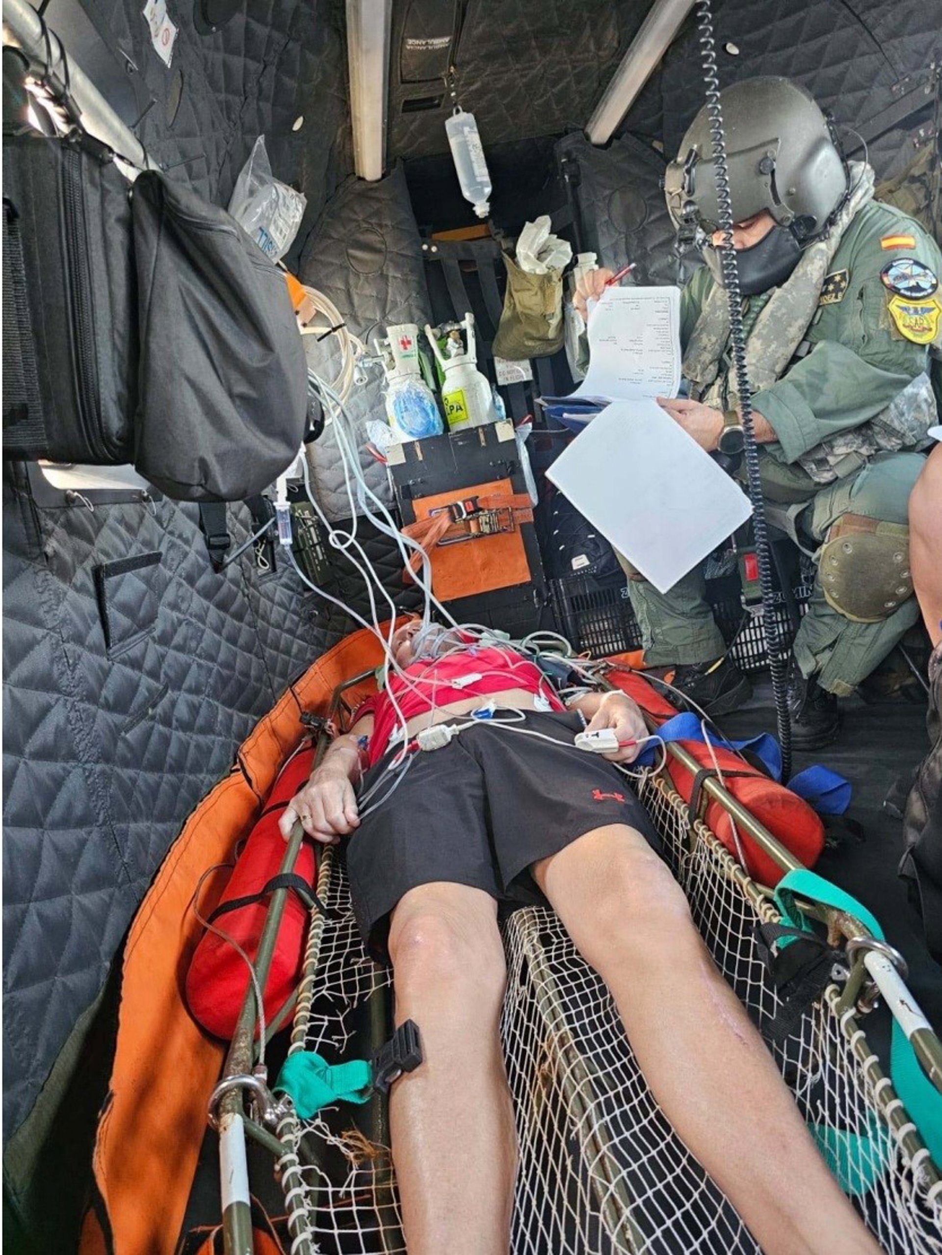 Tras evacuar al hombre, el helicóptero puso rumbo a la helisuperficie del Hospital Juan Negrín, donde fue recogido por una ambulancia del Servicio de Urgencias Canario (SUC) y trasladado al hospital donde quedó ingresado.