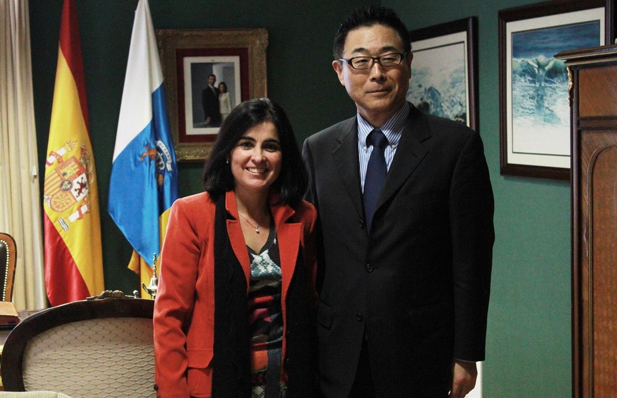 Darias y Koshikawa estuvieron acompañados por el cónsul de Japón en Las Palmas, Hidehiro Yoshii, con quien departieron sobre el papel de la comunidad nipona en Canarias y compartieron impresiones sobre la importancia de impulsar la internacionalización de la pequeña y mediana empresa, uno de los objetivos de gestión que se ha fijado el embajador.