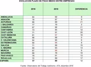 El periodo medio de pago entre empresas se ha incrementado en Canarias en 21 días en los últimos tres años, pasando de los 67 de 2016 a los 88 de 2019, según datos del Observatorio del Trabajo Autónomo de ATA.