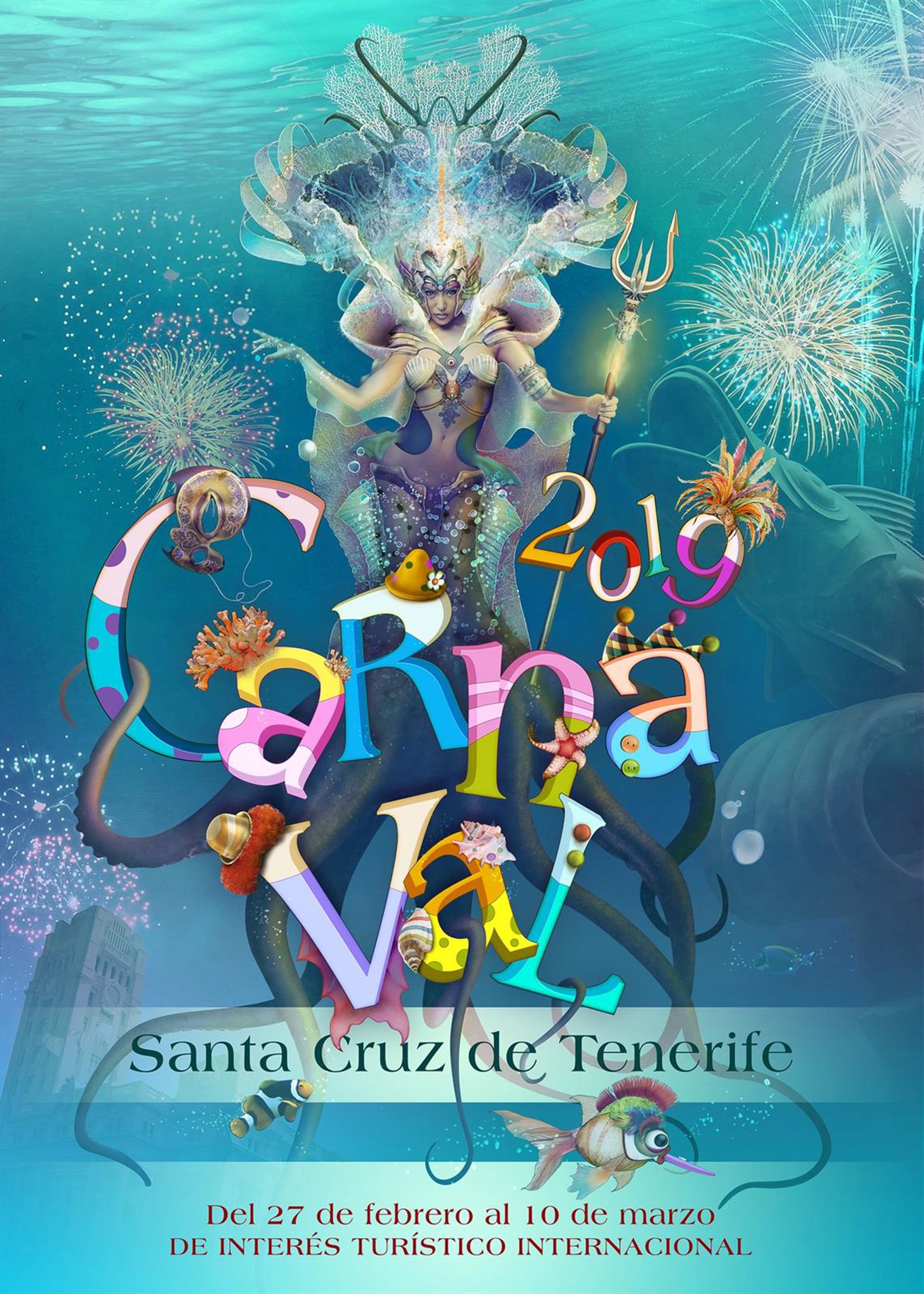 El cartel titulado 'Encarnación del Carnaval Marino', de José Luis Trujillo González, anunciará el Carnaval de Santa Cruz de Tenerife 2019.