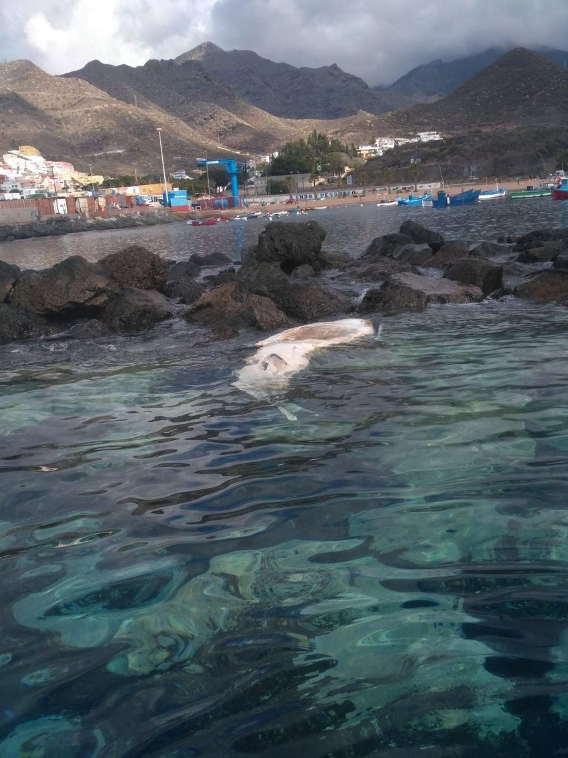 Los restos sin vida de un cetáceo varado han sido encontrados este sábado en el exterior de la escollera de la playa de Las Teresitas, en Santa Cruz de Tenerife, según ha informado el Cecopal.