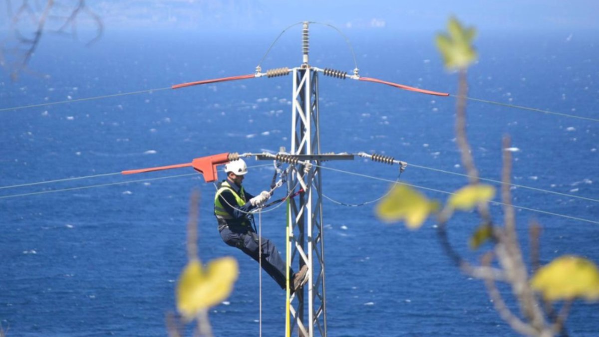 Un operario trabajando en una línea eléctrica - ENDESA