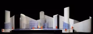 La superficie útil de la plataforma del escenario será de 36 metros de largo por 16 metros de fondo y las alturas máximas se situarán entre los 14 metros de la columna más alta a los 6 metros de la más baja. Los escenógrafos aprovecharán además el interior de estos pilares para cubrir las luminarias y torres de sonido a fin de que estos elementos técnicos queden completamente integrados en el decorado.