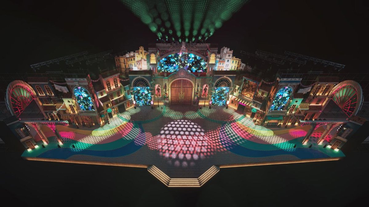 En el centro, comentó, se erige un gran portón colonial que enmarca la pantalla principal y da acceso a un patio interior, generando profundidad escénica y una lectura tridimensional envolvente".