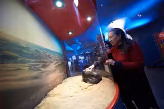 La escritora Elsa López, residente en La Palma, departió con astrofísicos e ingenieros del centro museístico, tras visitar, también, las instalaciones científicas del Observatorio del Roque de los Muchachos, en Garafía (La Palma), el Observatorio del Teide, en Izaña (Tenerife), y la sede central del Instituto de Astrofísica, en La Laguna.