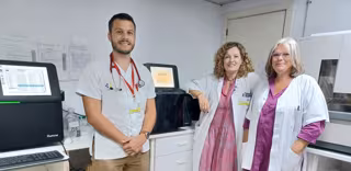 Néstor Baez, Felicitas Díaz-Flores y Antonia Pérez en sala secuenciadores de Genética del Hospital Universitario de Canarias - GOBIERNO DE CANARIAS