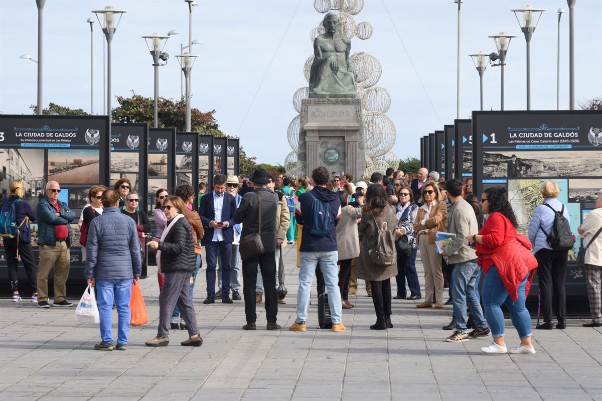 La exposición al aire libre 'La ciudad de Galdós. Las Palmas de Gran Canaria ayer (1843-1920)', ubicada junto a la escultura del escritor grancanario en el espacio peatonal que queda entre el Teatro Pérez Galdós y el Mercado de Vegueta, recuperará la ruta vital del escritor isleño en la capital grancanaria.