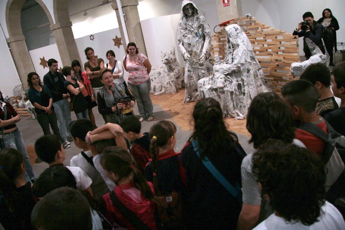 La exposición está compuesta por cinco belenes de grandes dimensiones realizados por un grupo de alumnos de la Facultad de Bellas Artes con material reciclado. Serrín, cartón, madera, ropa usada, vegetales y todo tipo de residuos reutilizables son la base de estas originales creaciones, que han sorprendido estas Navidades al numeroso público visitante.