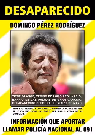 Domingo Pérez Rodríguez, de 64 años de edad, desapareció el 10 de mayo de 2012, vecino del barrio del Lomo Apolinario, en Las Palmas de Gran Canaria, recordó la familia en un comunicado.