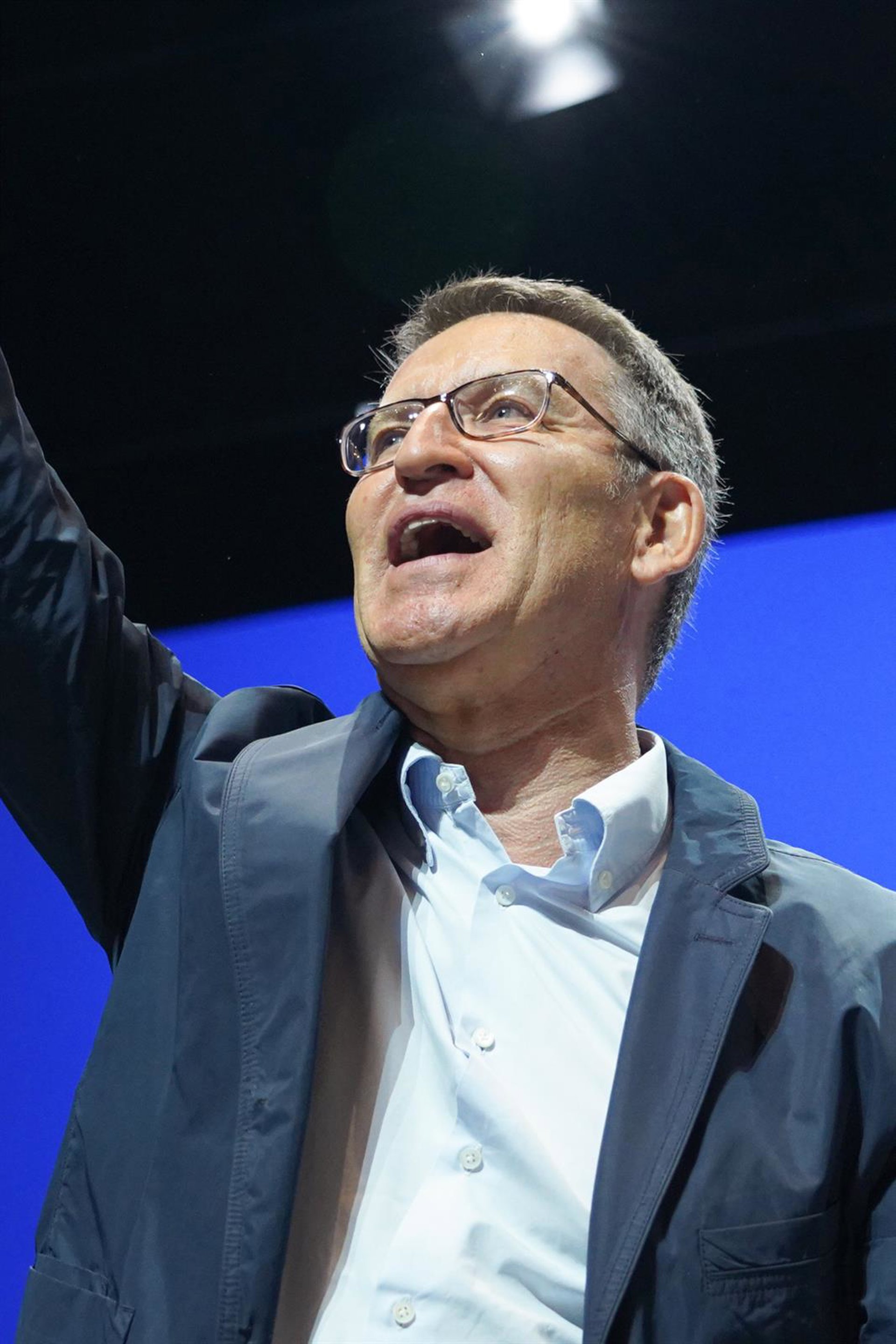 El presidente del Partido Popular, Alberto Núñez Feijóo, saluda durante un acto electoral del Partido Popular - Francisco J. Olmo - Europa Press