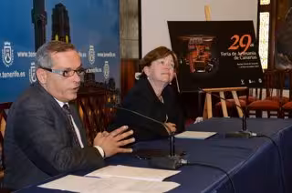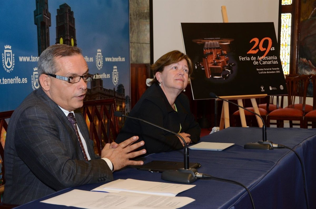 El vicepresidente económico y consejero de Empleo y Desarrollo Económico del Cabildo, Efraín Medina, y la directora general de Industria y Energía del Gobierno de Canarias, María Antonia Moreno, han presentado este martes el cartel que anuncia la próxima Feria de Artesanía de Canarias, que se celebrará del 5 al 8 de diciembre en el Centro Internacional de Ferias y Congresos de Tenerife.