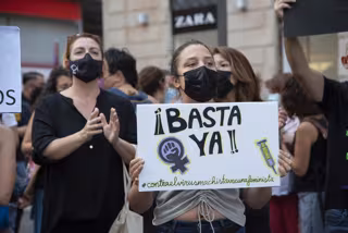 Una mujer con un cartel en el que se lee: `Basta ya, participa en una concentración feminista en la Plaza de la Candelaria en repulsa por "todos los feminicidios", a 11 de junio de 2021, en Santa Cruz de Tenerife, Tenerife, Islas Canarias (España). Esta - Europa Press