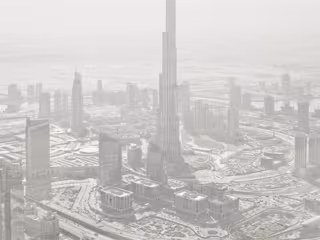 La muestra, que se presenta bajo el título 'De Rendering', ofrece un punto de vista singular sobre esta moderna ciudad construida en pleno desierto, destacando elementos como la maquinaria publicitaria basada en imágenes ficticias, edificios en construcción y la presencia constante del desierto.