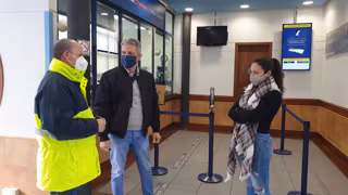 El director de Flota de Fred Olsen hablando con personas que se han trasladado al puerto de Agaete a recoger su vehículo tras atracar el 'Bentago Express' - FRED OLSEN