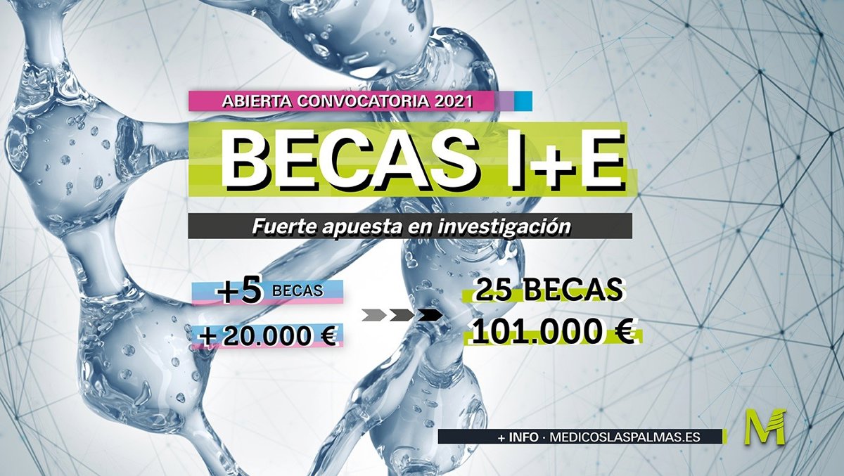 Estos 101.000 euros se enmarcan en la vigésimo sexta edición de las Becas I+E, permitiendo así aumentar el número de becas en cinco hasta las 25 y la cuantía económica en 20.000 euros, superando los 100.000 euros, según ha informado el Colegio de Médicos de Las Palmas en nota de prensa.