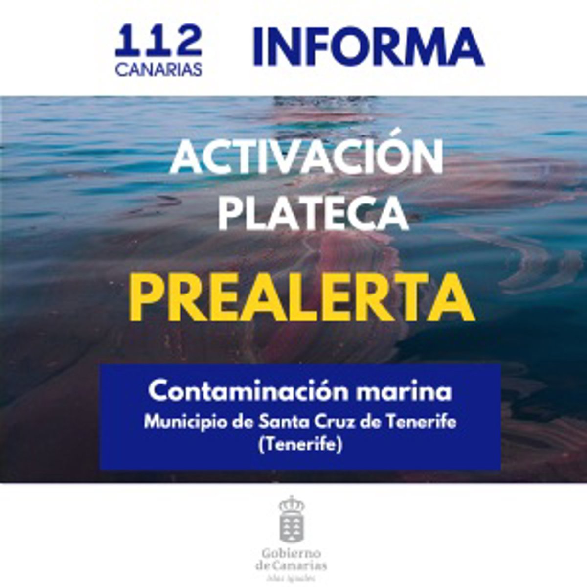 La Dirección General de Emergencias del Gobierno de Canarias, en base a la información disponible y en aplicación del Plan Territorial de Emergencia de Protección Civil de la Comunidad Autónoma de Canarias (PLATECA), declara la situación de Prealerta por posible contaminación marina desde las 21.45 horas de este domingo, 25 de enero, en Santa Cruz de Tenerife.