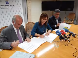 El convenio ha sido suscrito esta mañana por la consejera de Política Territorial, Sostenibilidad y Seguridad del Gobierno canario, Nieves Lady Barreto, y el representante de la Asociación Canaria en Defensa de los Intereses de los Afectados por la Ley de Costas, José Luis Langa.
